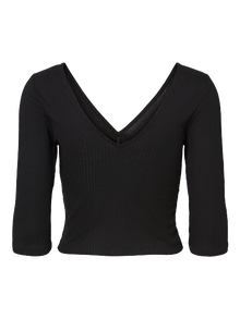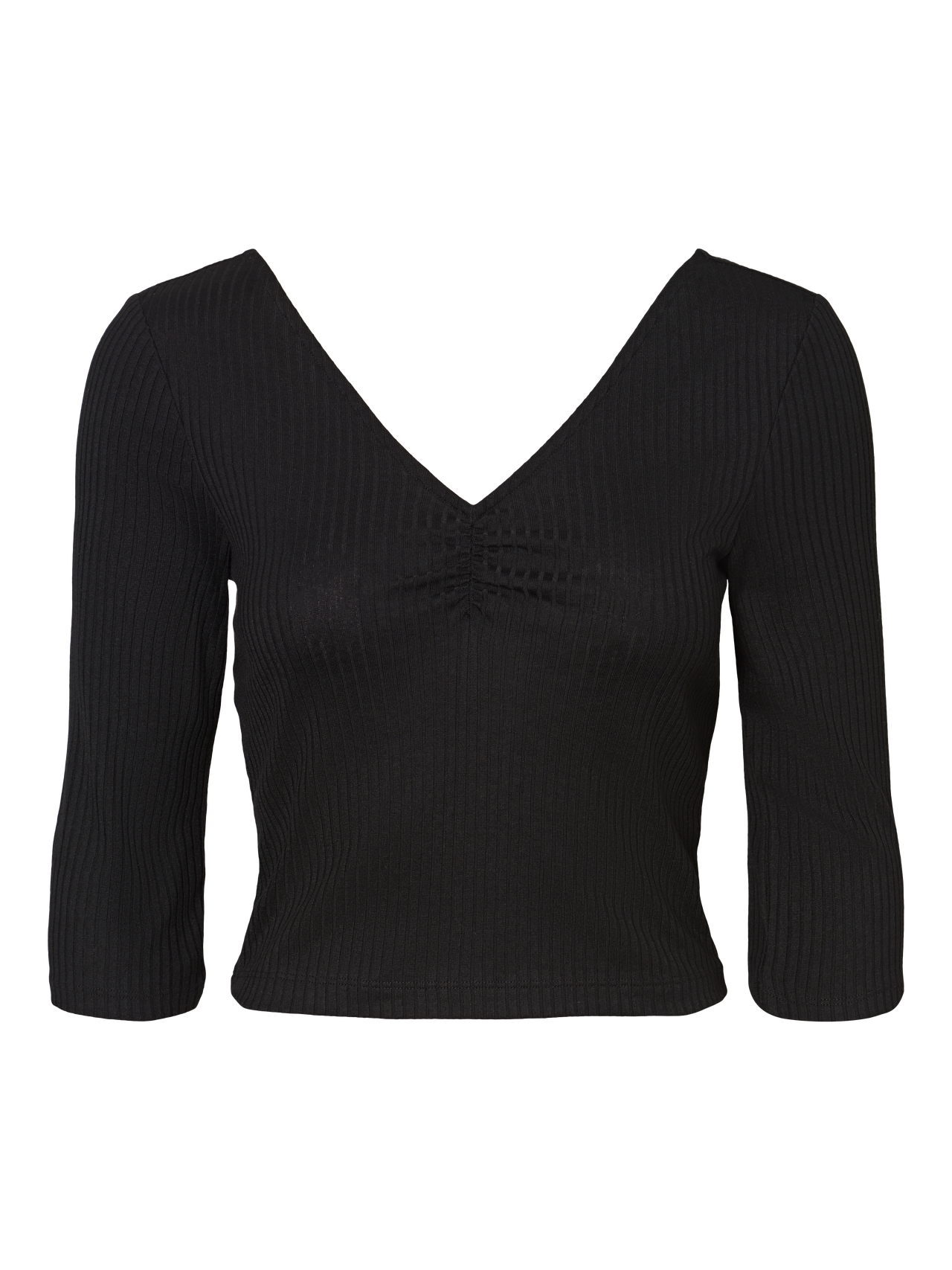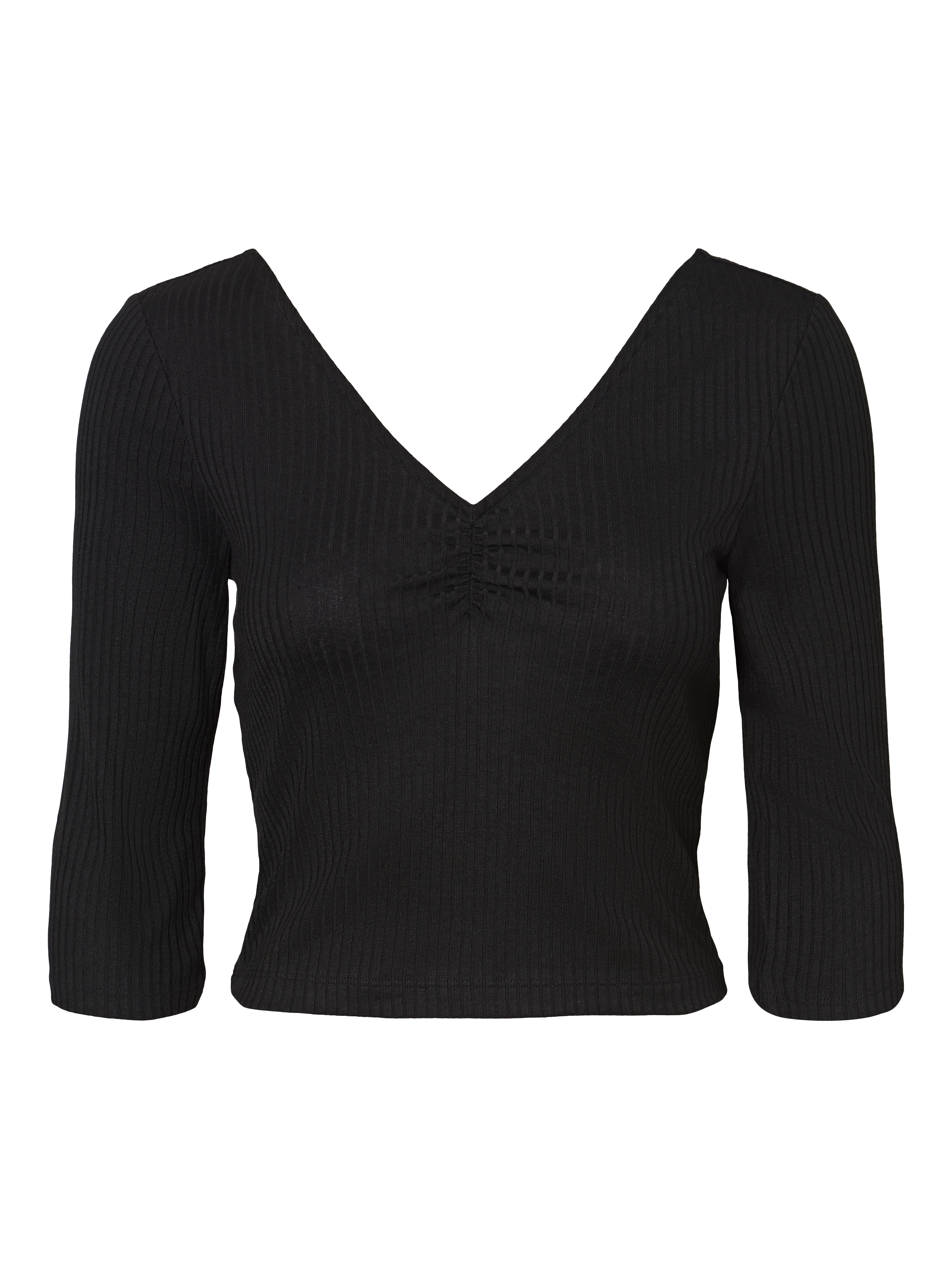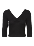 LDS 3/4 CROPPED V-NECK BLOUSE IN KAREN QUALITY WITH GATHERINGS AT CHEST