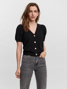 Cardigan with short volume sleeves and embellished button closure. The cardigan is made from a soft viscose blend material. Style it with trousers for an elegant look.