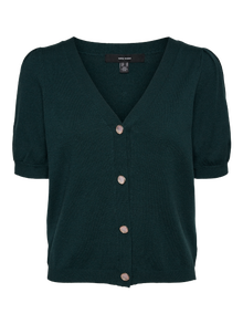 Cardigan with short volume sleeves and embellished button closure. The cardigan is made from a soft viscose blend material. Style it with trousers for an elegant look.
