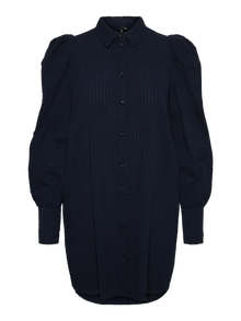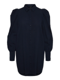 LDS WOVEN SHIRT DRESS WITH FABRIC COVERED BUTTONS.