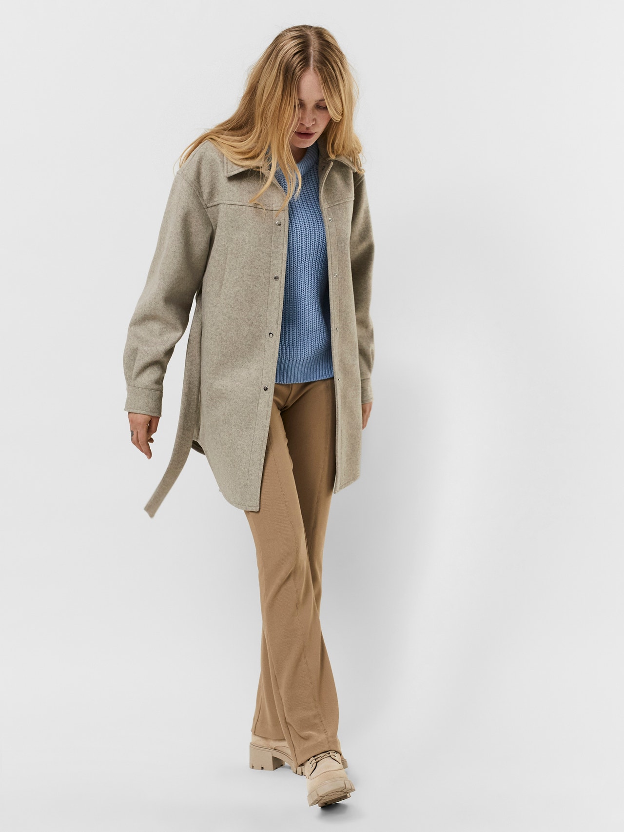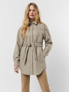 - Produkttyp : Jacke - Hals : Fly-Away Kragen - Ärmel : Langarm - Manschetten : Ärmelbündchen mit Knopf - Verschluss : Knopfleiste - Details : Gürtel in der Taille