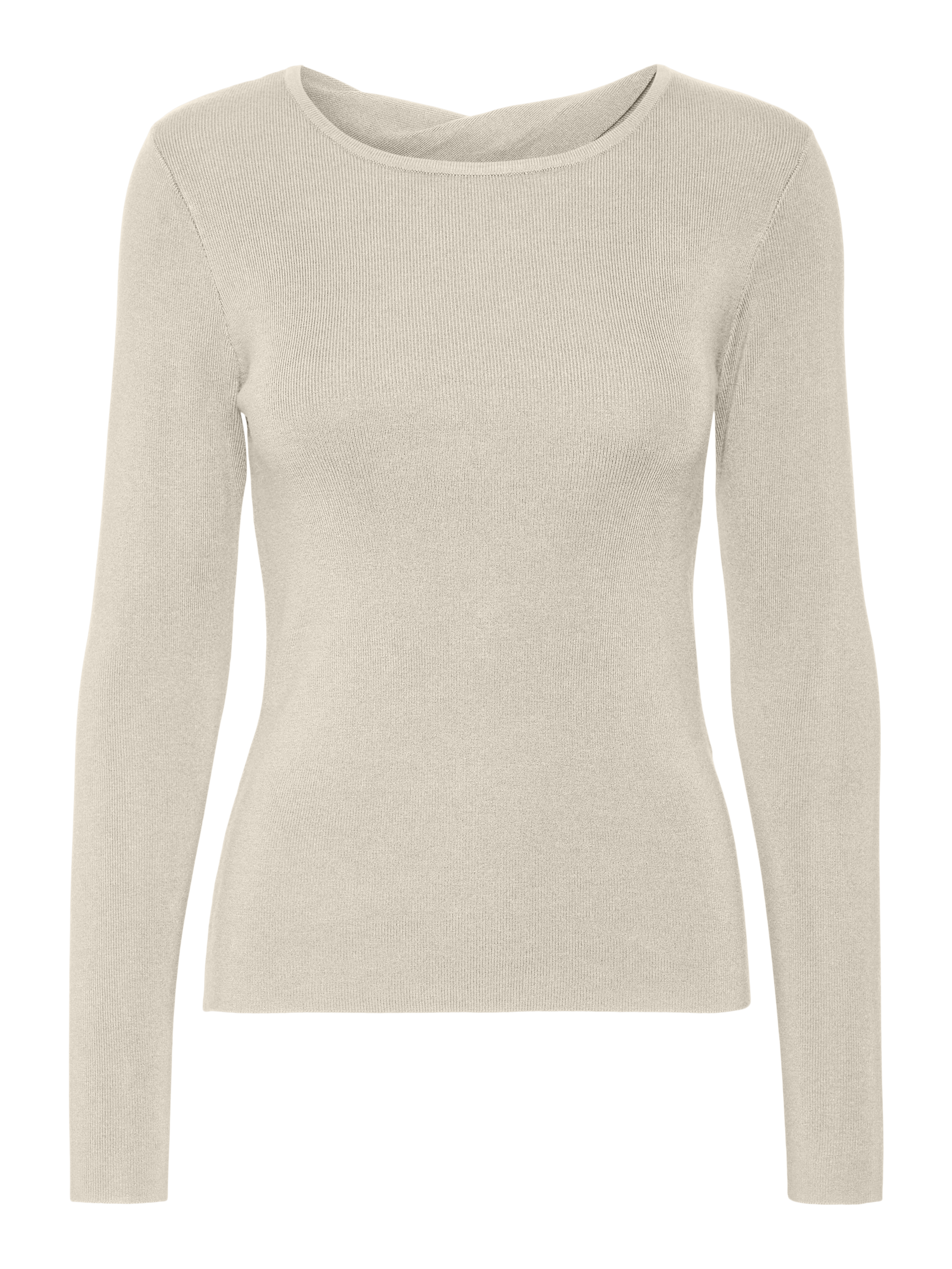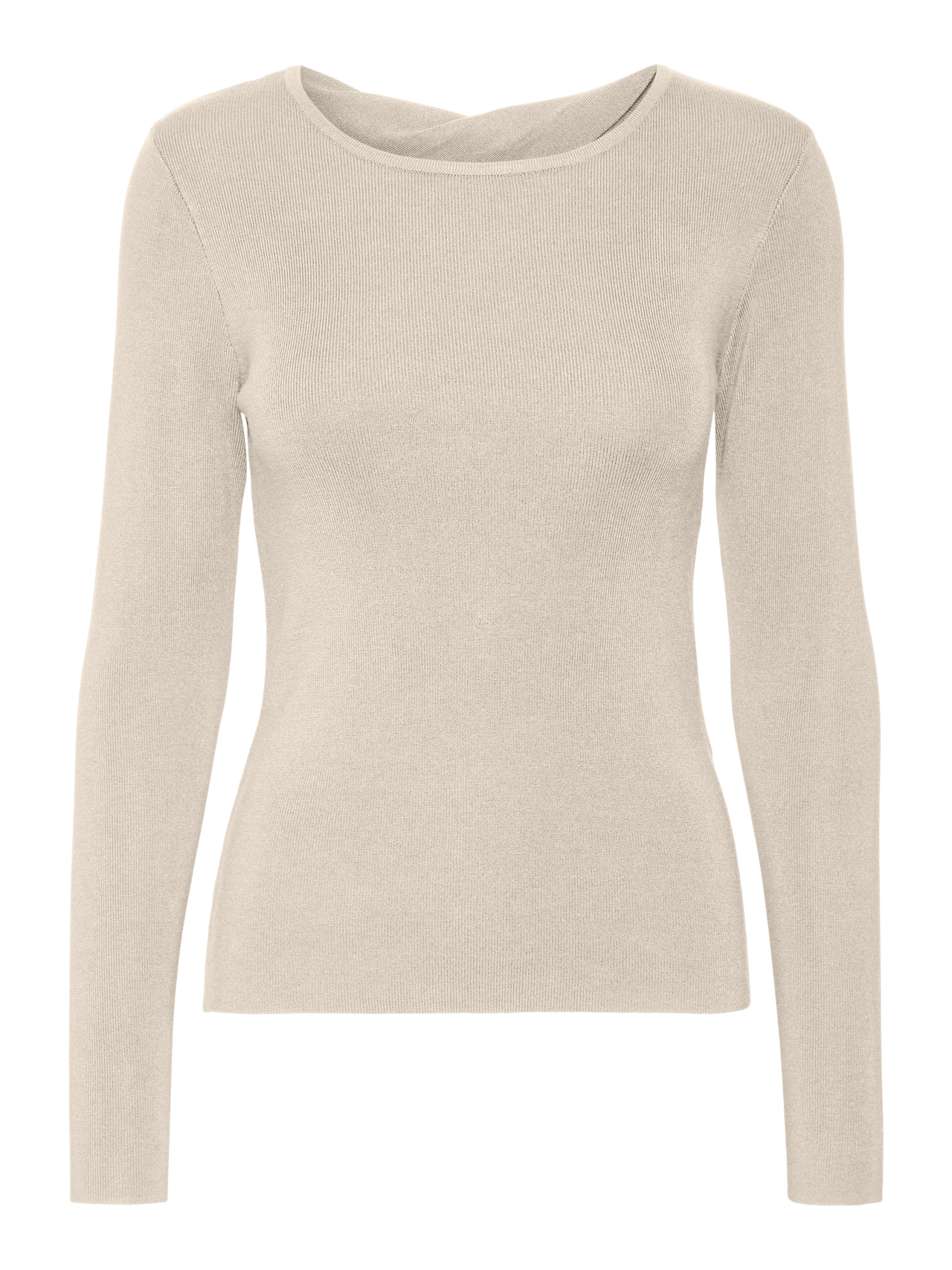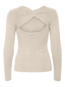 Long sleeved pullover with a twist detail and cut-out in the back, a round neckline and a raw cut bottom and cuff hemline. Style this detailed pullover with some high-waisted jeans and a pair of chunky boots for a great everyday look.