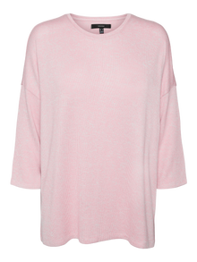 Knitted pullover with 3/4 sleeves, a round neckline, and dropped shoulders. Style this cute pullover with a skirt and a pair of loafers for a stylish look.