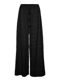 Wide pants with a high-waist, elastic at the back, tie strings at the waist, and lining shorts. These wide pants give the ultimate bohemian vibe. Style them with a pair of flat sandals, and a loose fitted blouse and you have yourself a relaxed and bohemian chic look for spring and summer.