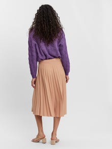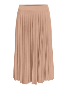 Long, pleated skirt with a high waist, an elastic waist, and a layered look. Style this feminine skirt with a tucked t-shirt and some cute sandals, for a breezy and sweet everyday look.