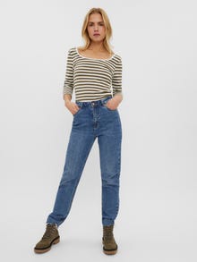 Casual top with a u-neck and 3/4 sleeves in a slim fit. Style this cute top with a pair of loose fit jeans and your favourite chunky boots for a cool, go-to look.