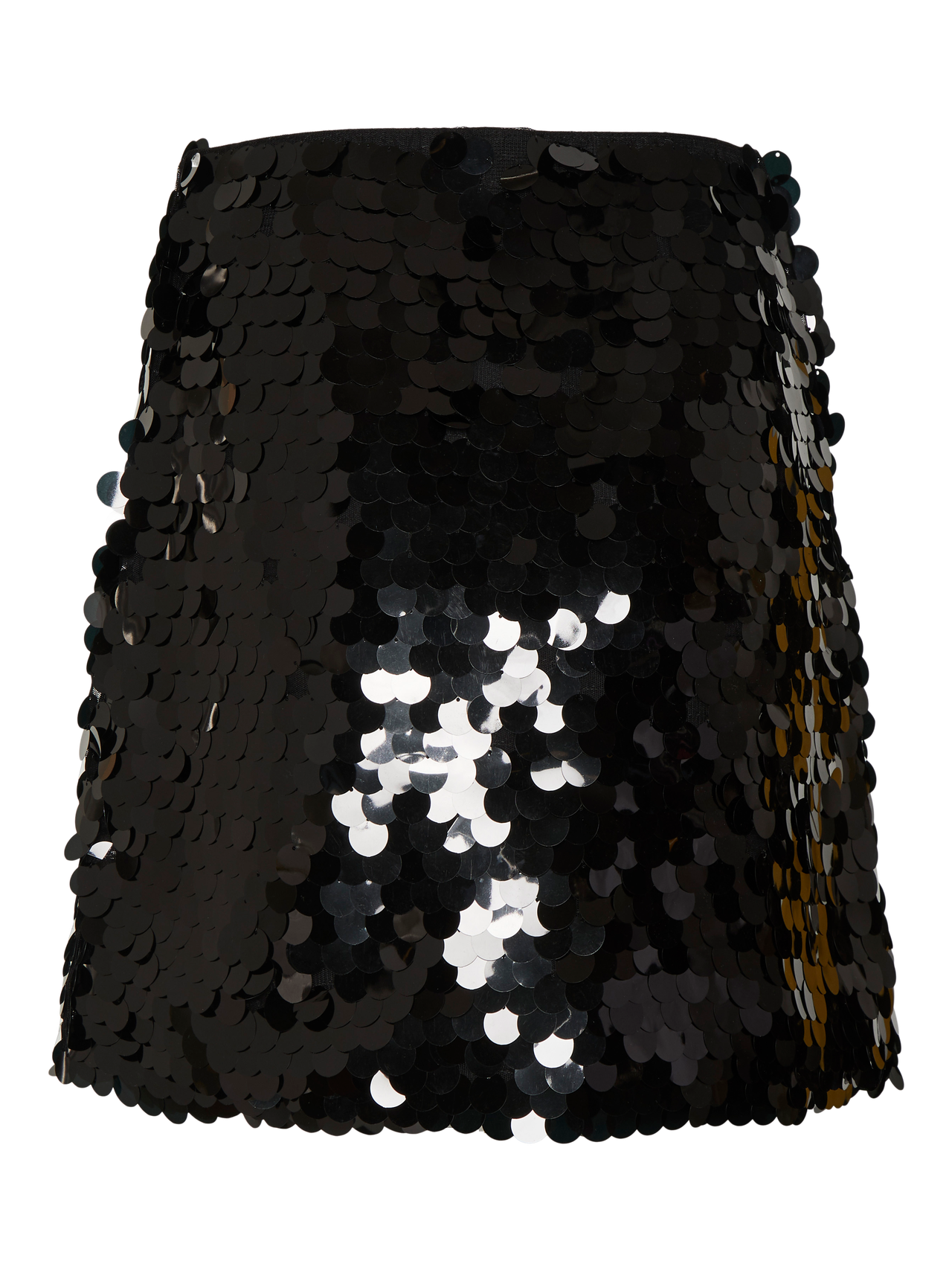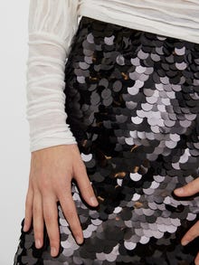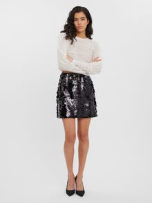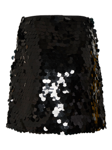 Minirock mit Pailletten und Reißverschluss. Style diesen coolen Rock mit einem Langarmoberteil aus Netzstoff und Absatzschuhen und starte in die Partynacht.