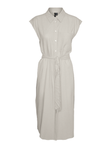 Ein Hemdkleid ist vielseitig und stylish. Und dieser Style ist ein absolutes Must-have. Kombiniere es mit einer Jeans oder trag es, wie es ist. Ergänze einen Taillengürtel, um deine Figur zu betonen. Dieses Hemdkleid bietet unendlich viele Styling-Optionen und ist perfekt für Tage, an denen du nicht weißt, was du anziehen sollst. - Produkttyp : Hemdblusenkleid - Hals : Rundhals - Ärmel : Ohne Ärmel - Verschluss : Knopfleiste - Länge/Größe : Wadenlänge - Details : Gürtel in der Taille - Passform : Normal geschnitten
