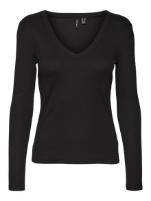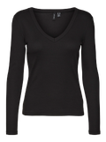 LDS JERSEY L/S RIB TOP WITH A DEEP V-NECK. Length 60 cm.