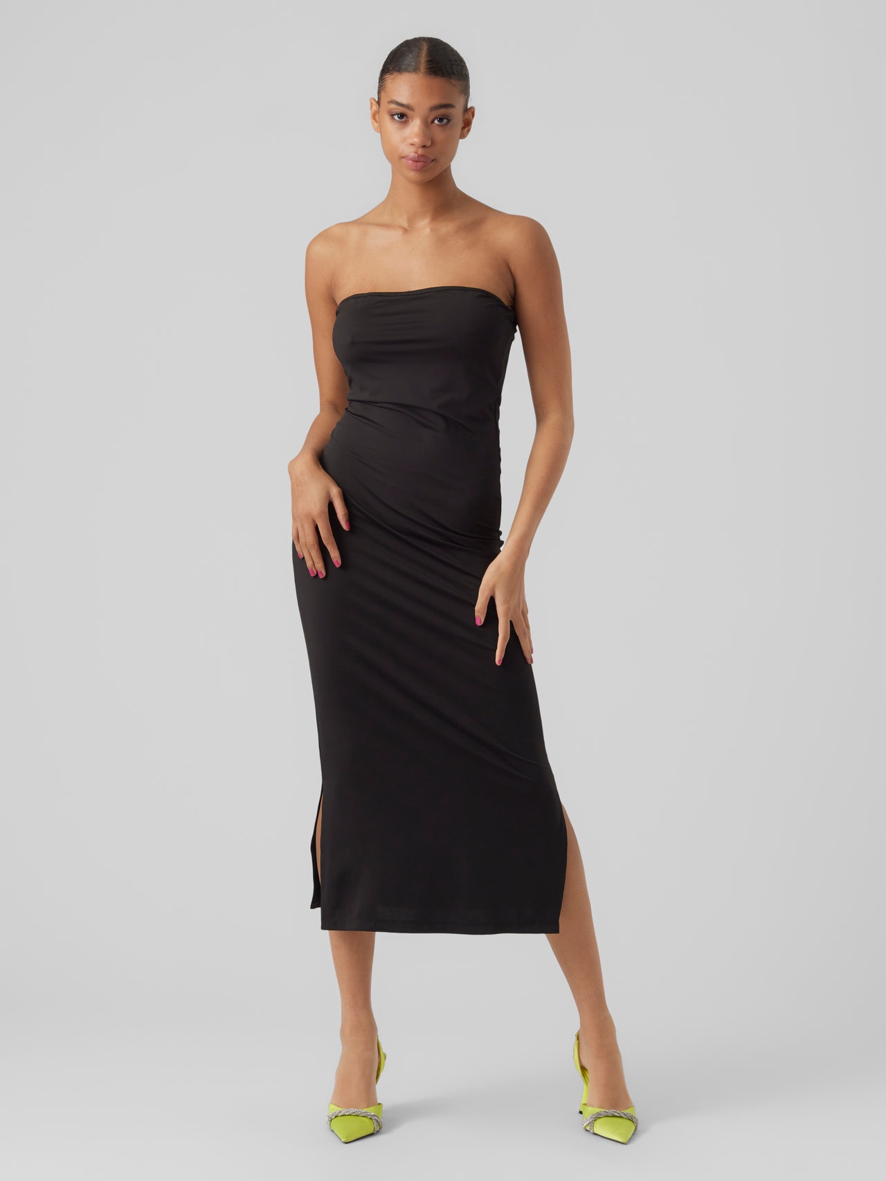 Zeig deine tolle Figur mit diesem körperbetonten Kleid. Dank der schlichten Silhouette kannst du es für jeden Anlass stylen, ob für einen Besuch im Café oder eine Party. Dieses Kleid wird schnell zu deinem neuen Favoriten werden und ist perfekt für Tage, an denen du keine Zeit hast, ein komplettes Outfit zusammenzustellen. - Produkttyp : Kleid - Hals : Schulterfrei - Ärmel : Ohne Ärmel - Länge/Größe : Über dem Knie - Passform : Enger Schnitt