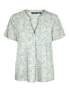Blusen sind die vielseitigsten Teile in deinem Kleiderschrank. Du kannst sie zu fast allem tragen, von Jeans über Hosen bis hin zu Röcken. Und unsere Styles sind da keine Ausnahme. Dieser Style verleiht deinem Look im Handumdrehen mehr Eleganz. - Produkttyp : Top - Hals : V-Ausschnitt - Ärmel : Kurzarm - Passform : Normal geschnitten
