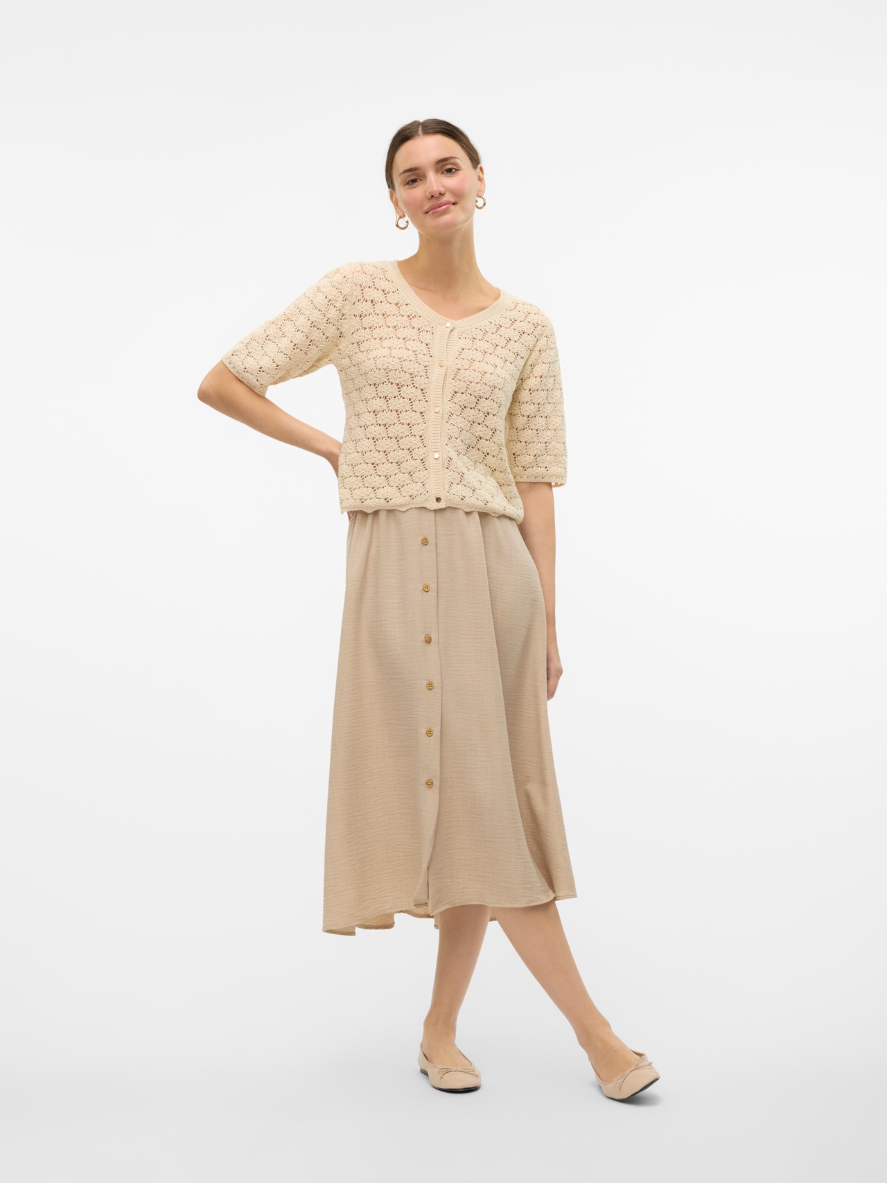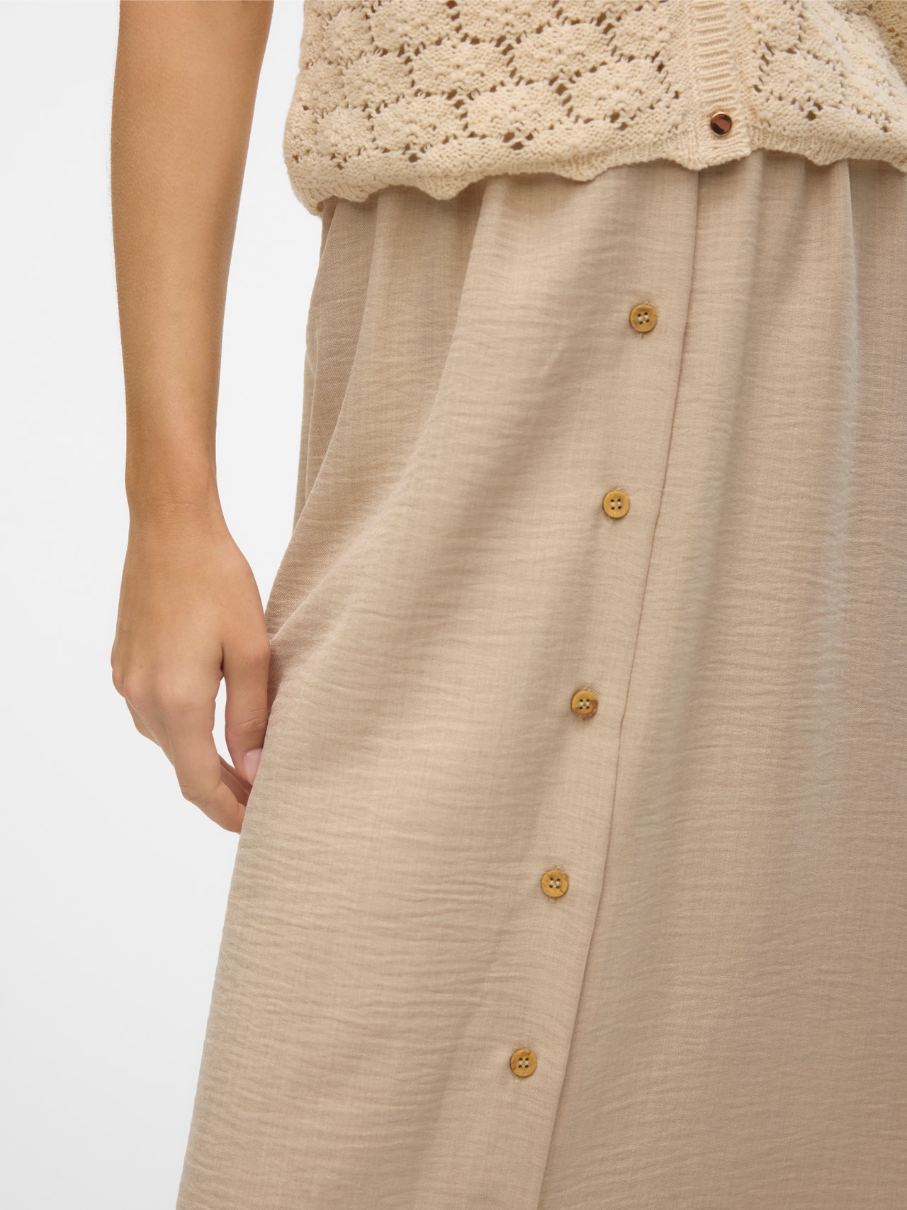 Ein Midi-Style ist einfach unschlagbar vielseitig. Dieser Rock passt zu jedem Anlass, denn du kannst ihn problemlos schicker oder lässiger stylen. Ob im Büro, beim Mittagessen oder auf einer Party, dieser Rock sorgt für den perfekten Look. Was willst du mehr?. - Produkttyp : Rock - Taille : Hohe Taille - Futter : Dngefüttert - Details : Elastisches Taille