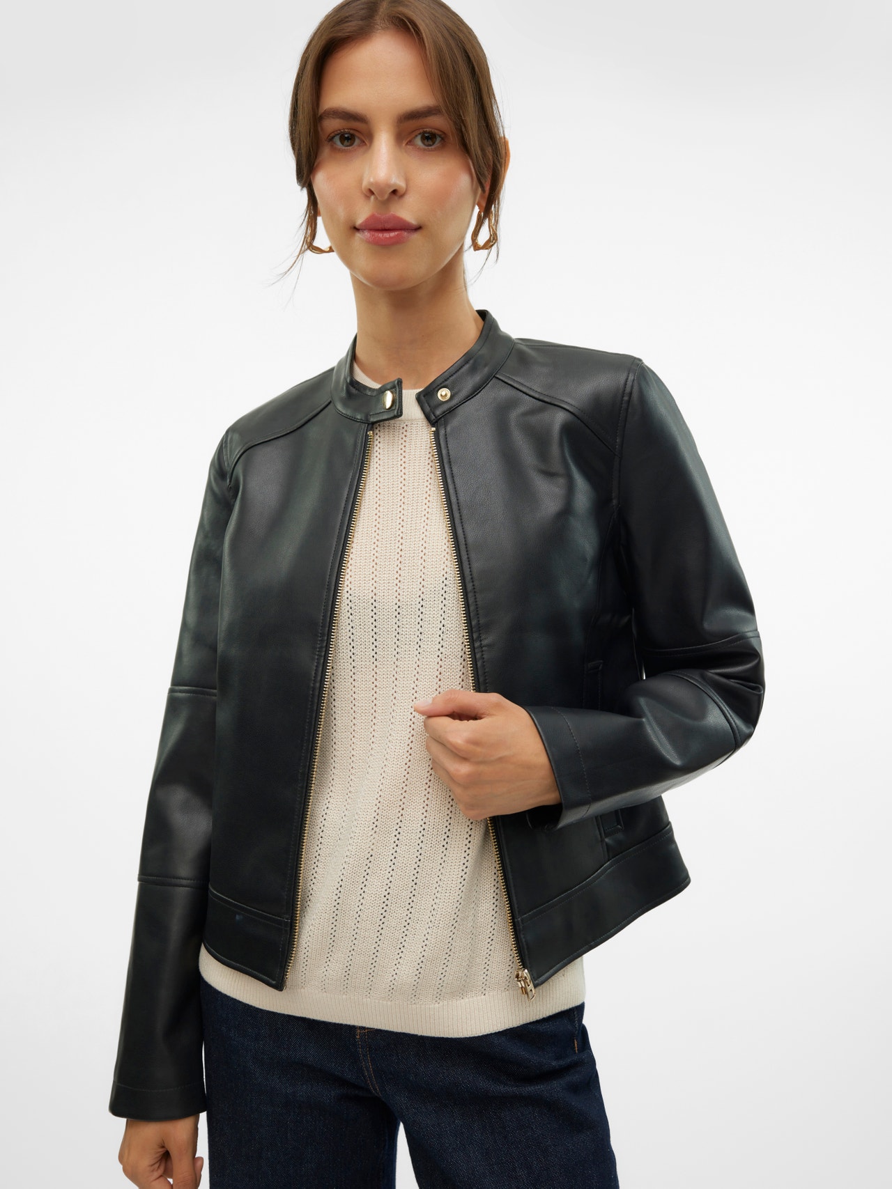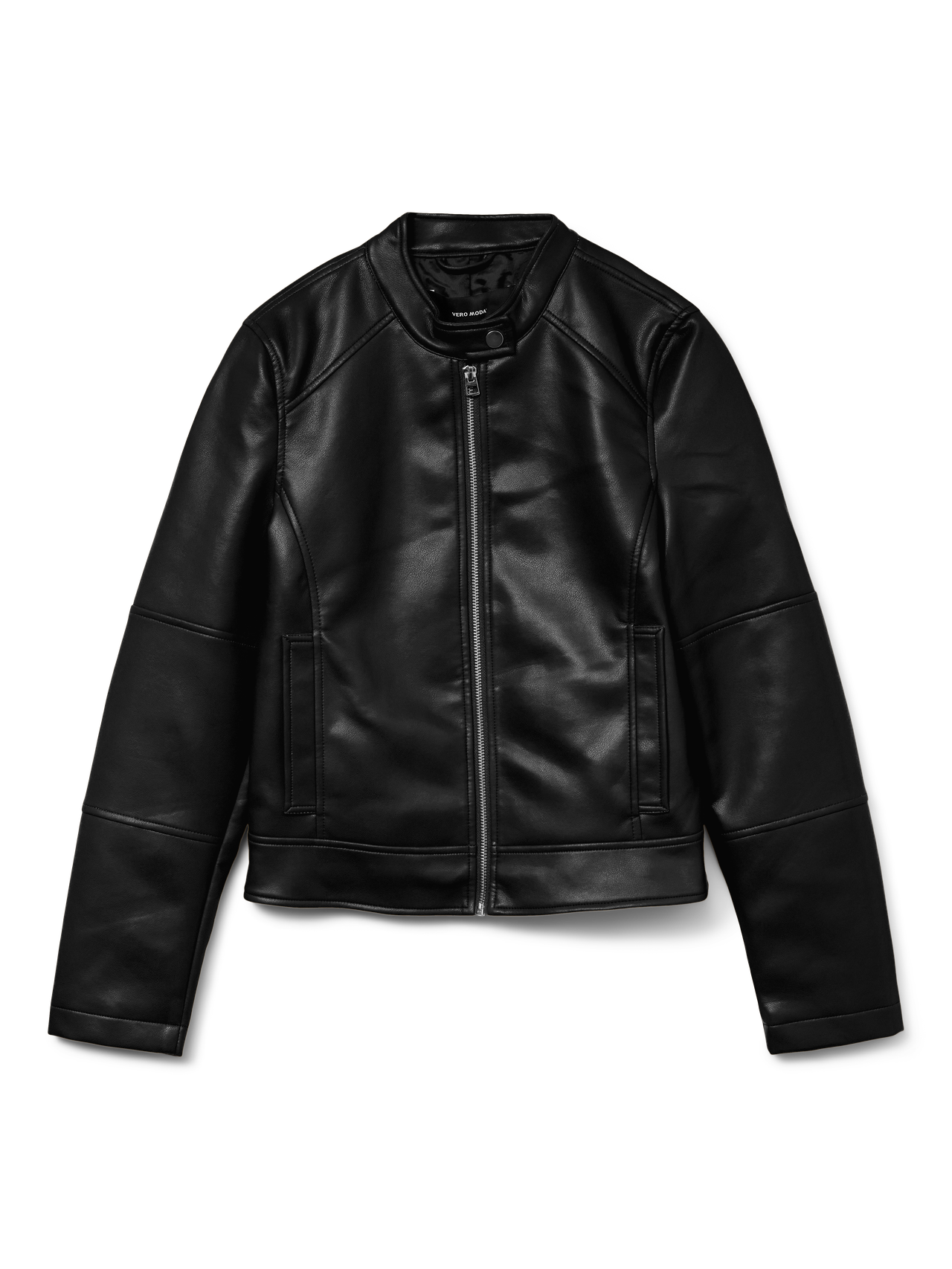 Ein unübertreffbares Lieblingsteil, das du über das ganze Jahr hinweg trägst und jedes Outfit aufwertet. Eine Polyurethan-Jacke ist einfach und vielseitig zu stylen und verleiht deinem Alltagslook einen coolen Street-Style-Vibe. Ihr klassischer und zeitloser Look bietet dir endlose Styling-Optionen. - Produkttyp : Jacke - Hals : Fly-Away Kragen - Ärmel : Langarm - Verschluss : Reißverschluss - Taschen : Seitentaschen - Länge/Größe : Kurz - Futter : Gefüttert - Details : Knopf-Details