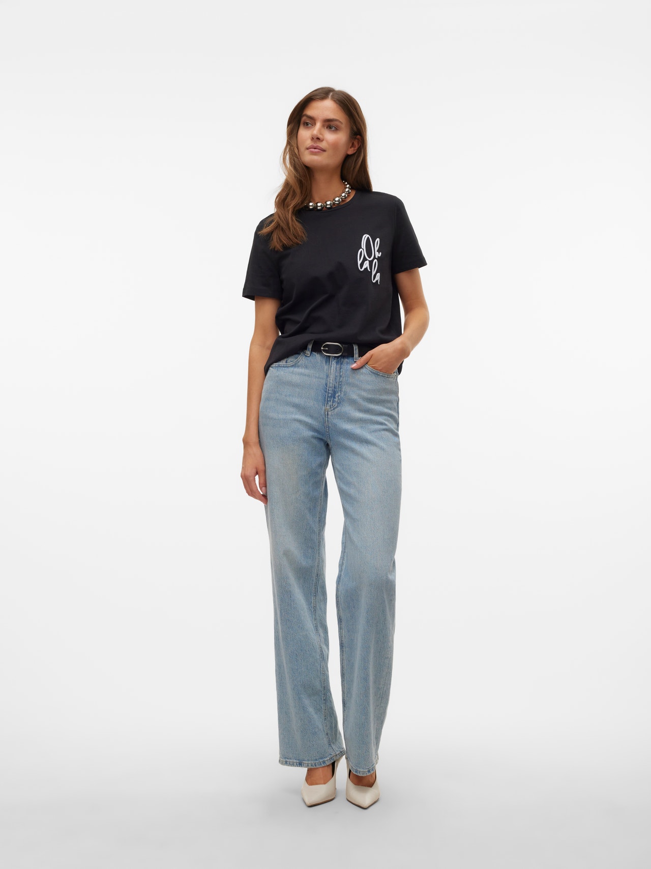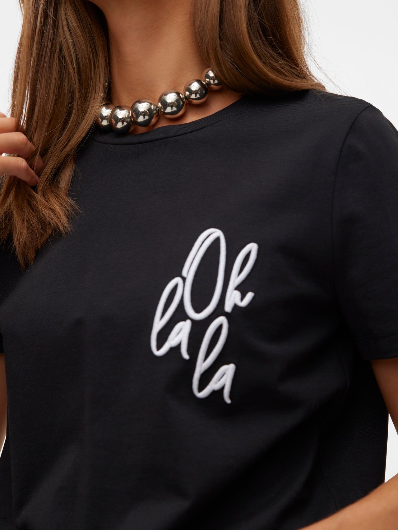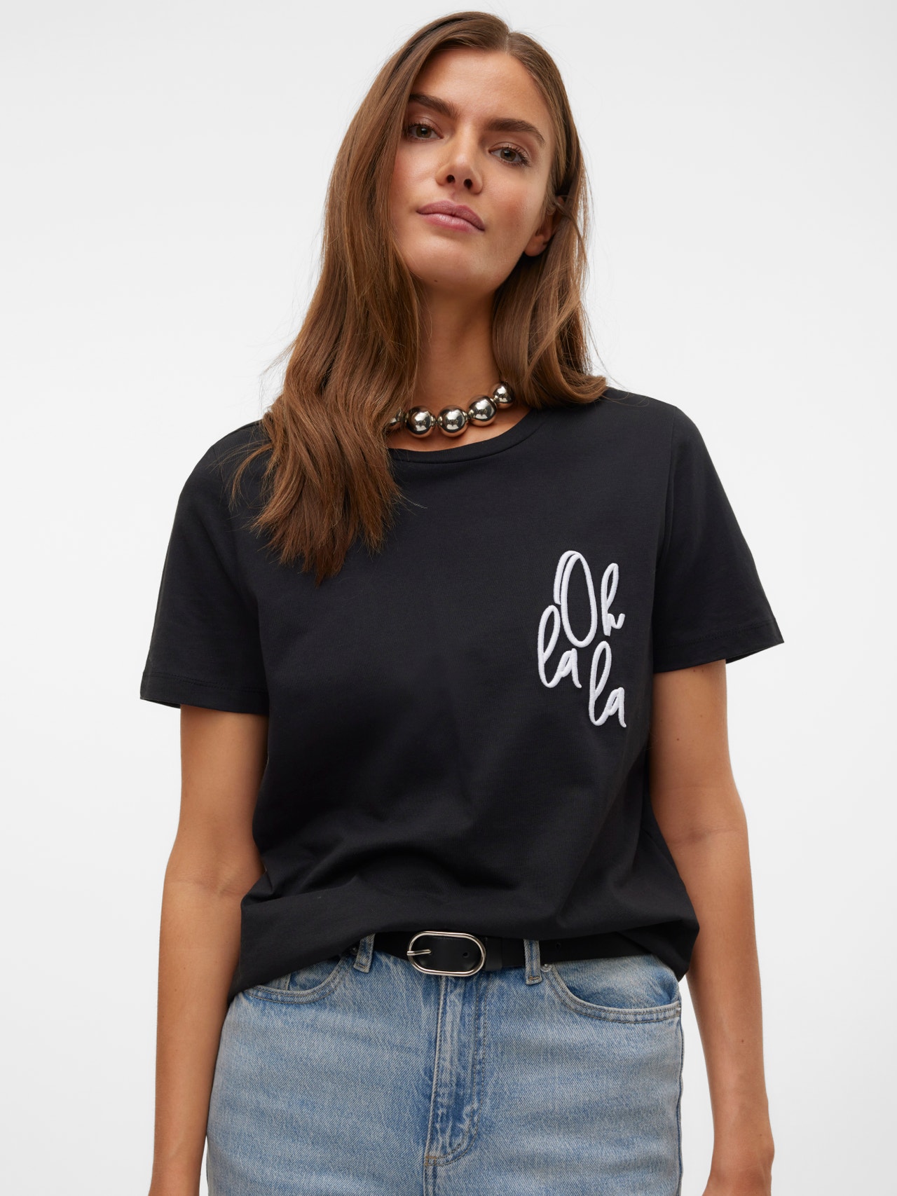 Im Zweifelsfall ein T-Shirt tragen! Mit einem T-Shirt können Sie nie etwas falsch machen - eine perfekte Wahl für einen coolen und zeitlosen Look. Tragen Sie dieses T-Shirt zu einer schönen Boyfriend-Jeans und fügen Sie ein Paar klobige Sneaker für einen urbanen City-Look hinzu.