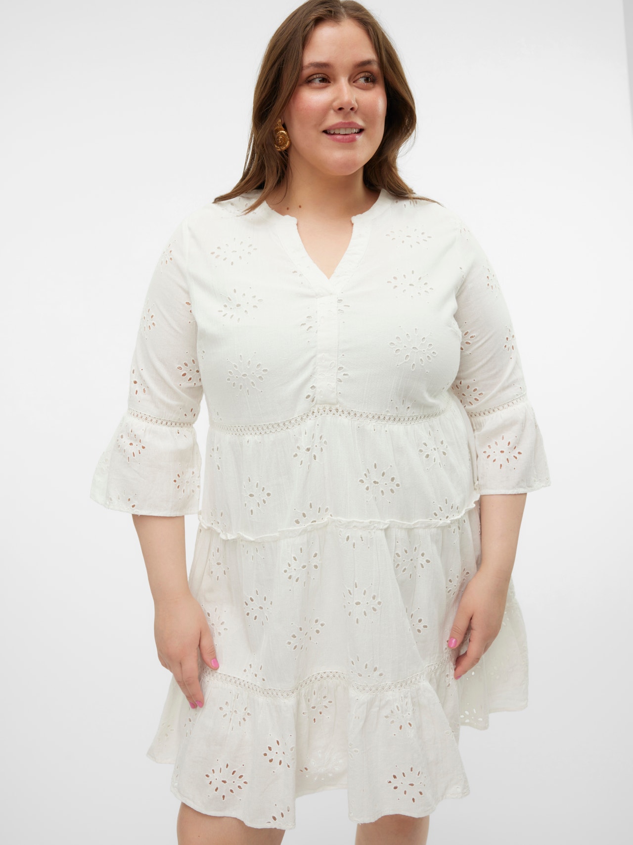 Diese Tunika ist die perfekte Mischung aus Hemd und Kleid. Style sie an kühlen Tagen mit einer Skinny Jeans oder trag dazu eine dünne Strumpfhose, wenn die Temperaturen steigen. Jetzt fehlen nur noch schöne Absatzschuhe und fertig ist ein klassischer Alltagslook. Curve-Styles sind so designt, dass sie kurvigen Frauen perfekt passen.. - Produkttyp : Top - Neck : V-Ausschnitt - Ärmel : 3/4 Arm - Manschetten : Nicht verstellbare Bündchen - Futter : Gewebtes Baumwollfutter für Komfort und ein weiches Hautgefühl - Details : Bestickt - Körperform : Curve