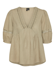 Basics finden sich in jedem Kleiderschrank. Unsere Basic-Oberteile sind das verbindende Element für ein Outfit – und dieses Oberteil ist da keine Ausnahme. Style es mit einer Hemdjacke, einer bequemen Mom Jeans und Chunky Stiefeln zu einem lässigen und coolen Alltagslook. - Produkttyp : Top - Hals : V-Ausschnitt - Ärmel : Halbarm - Details : Spitzen-Detail - Passform : Normal geschnitten