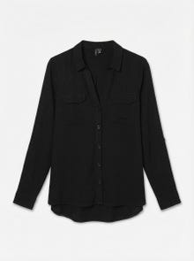 Diese Bluse ist ein schicker und vielseitiger Neuzugang in deinem Kleiderschrank, denn du kannst sie entweder offen über einem schlichten Oberteil oder geschlossen tragen. Kombiniere sie mit einer klassischen Jeans und einem schlichten T-Shirt zu einem coolen Alltagslook oder style sie schicker, indem du dazu eine Anzughose und Absatzschuhe trägst.