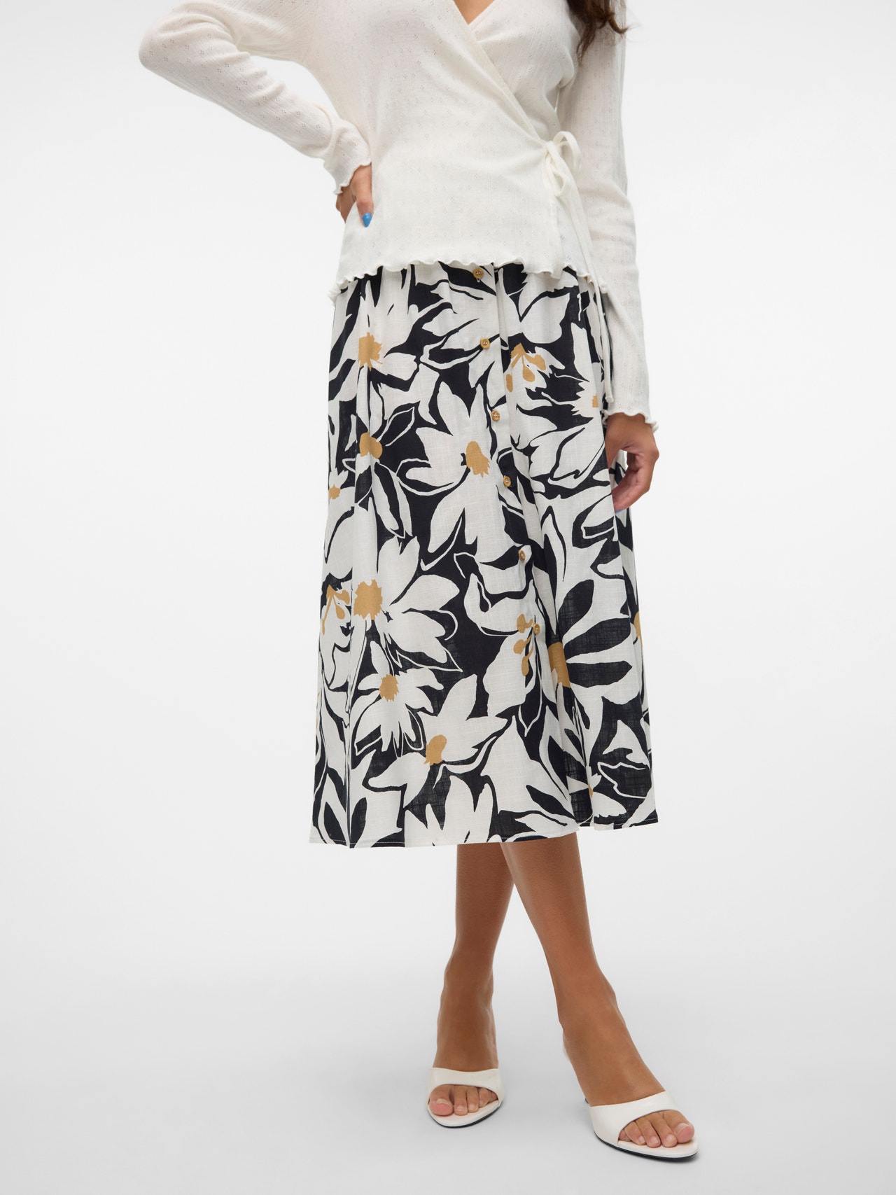 Ein Midi-Style ist einfach unschlagbar vielseitig. Dieser Rock passt zu jedem Anlass, denn du kannst ihn problemlos schicker oder lässiger stylen. Ob im Büro, beim Mittagessen oder auf einer Party, dieser Rock sorgt für den perfekten Look. Was willst du mehr?. - Produkttyp : Rock - Verschluss : Knopfleiste - Taille : Hohe Taille - Länge/Größe : Dieses Produkt fällt größengetreu aus - Details : Knopf-Details