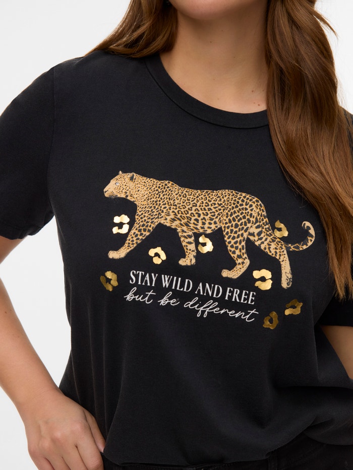 Im Zweifelsfall ein T-Shirt tragen! Mit einem T-Shirt können Sie nie etwas falsch machen - eine perfekte Wahl für einen coolen und zeitlosen Look. Tragen Sie dieses T-Shirt zu einer schönen Boyfriend-Jeans und fügen Sie ein Paar klobige Sneaker für einen urbanen City-Look hinzu.