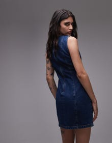Topshop denim mini shift dress in mid blue - MBLUE