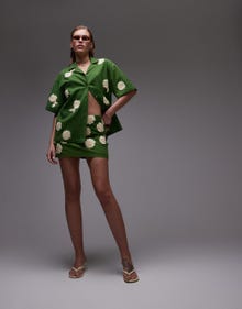 Topshop co-ord pelmet skirt in green with raffia flowers - MGREEN