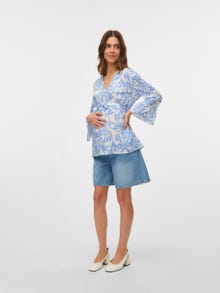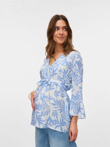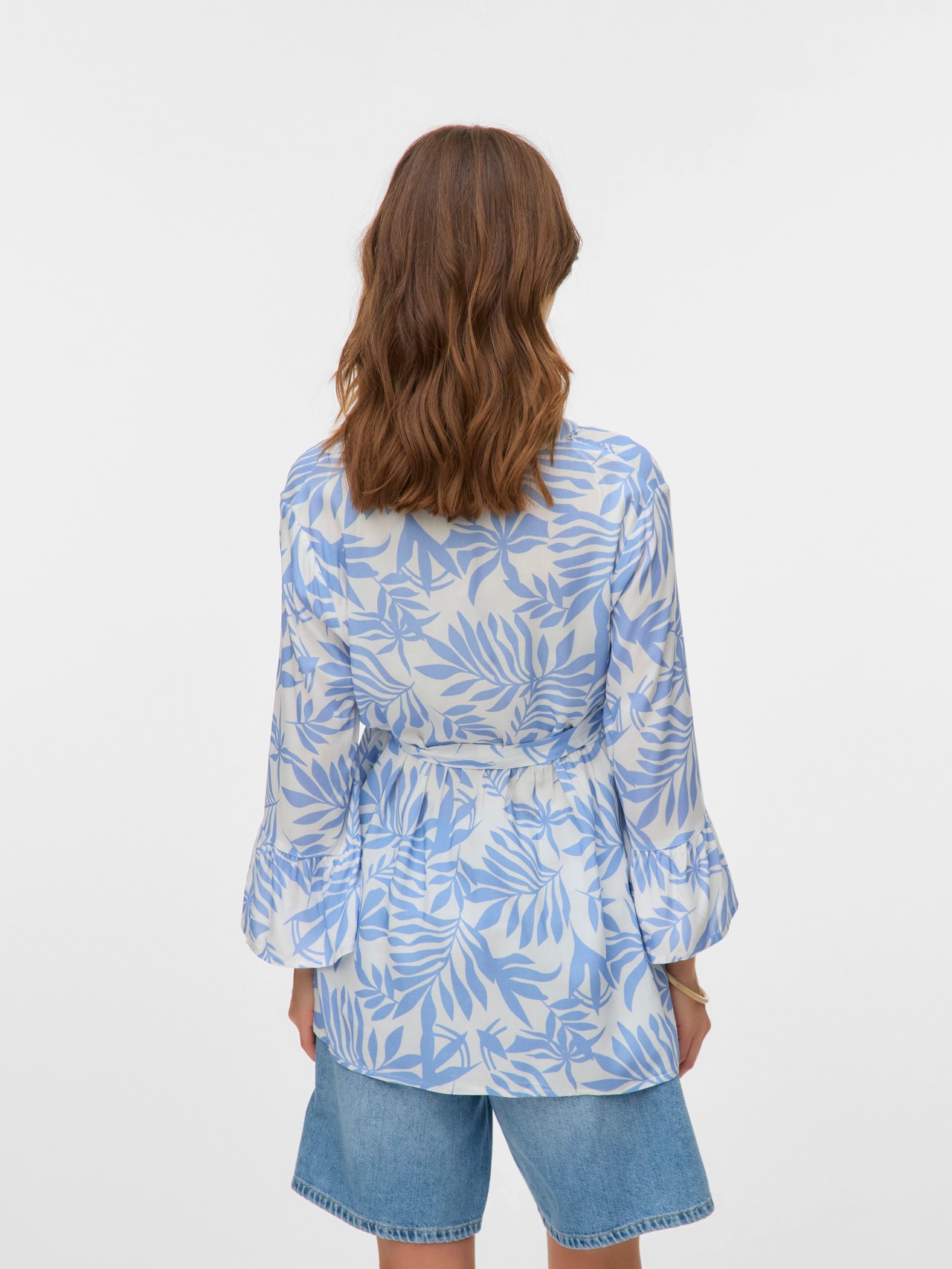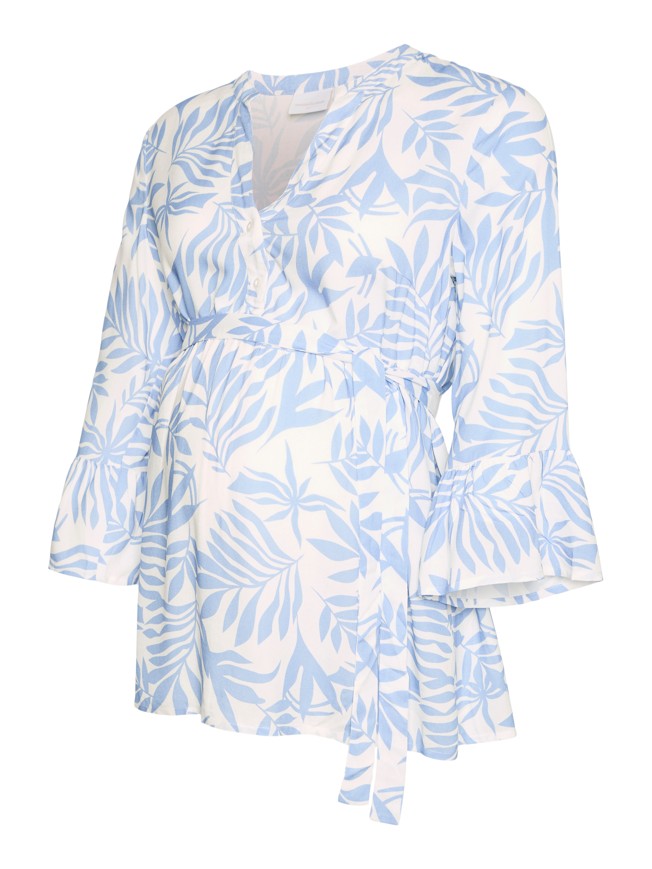 Starte mit weichen und schönen Frühlingsstyles in die Saison der Neuanfänge. Diese Styles passen sich perfekt an deinen wachsenden Bauch an und verleihen jedem Outfit mehr Farbe und Frische. - Produkttyp : Bluse - Hals : V-Ausschnitt - Ärmel : 3/4 Arm - Ärmel : Weite Ärmel - Manschetten : Ärmelbündchen mit Rüschen - Details : Gürtel in der Taille, Gerundeter Saum, Schnittlinie über dem Bauch, Hinten länger - Print : Der Druck wiederholt sich auf der gesamten Oberfläche des Produkts - Passform : Locker geschnitten