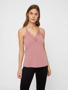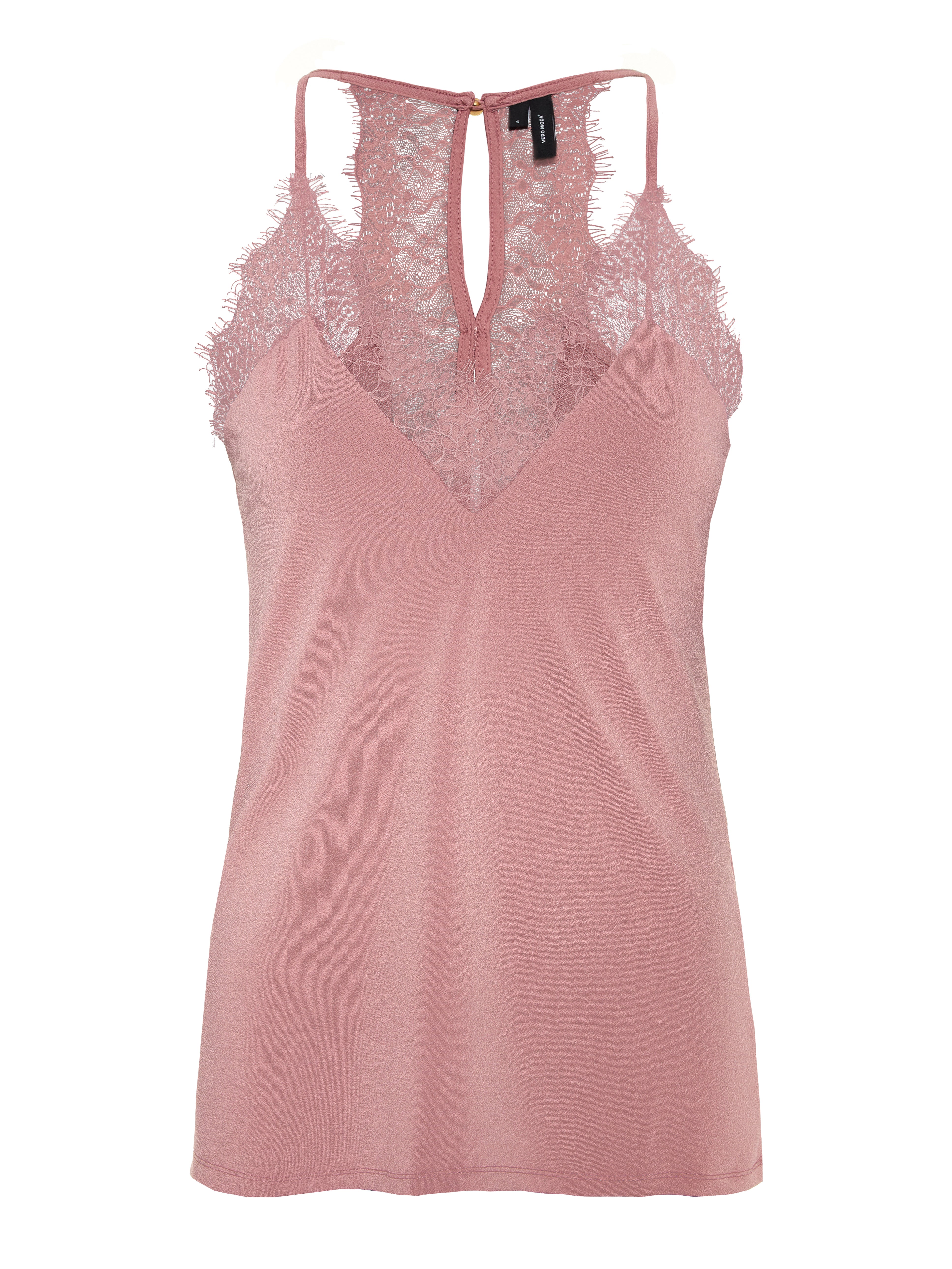 Top with lace details, button details and adjustable shoulder straps. Style the top with high waisted trousers and high heels for an elegant look.