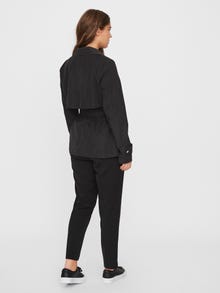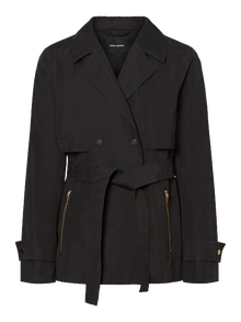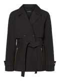 Short, double-breasted jacket with press button details, pockets with zip closure and a wrap belt at the waist. Wear it with trousers and boots for everyday wear.
