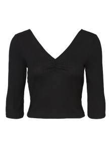 LDS 3/4 CROPPED V-NECK BLOUSE IN KAREN QUALITY WITH GATHERINGS AT CHEST