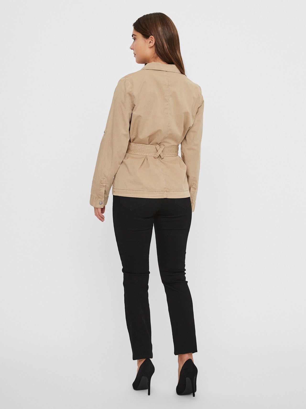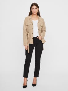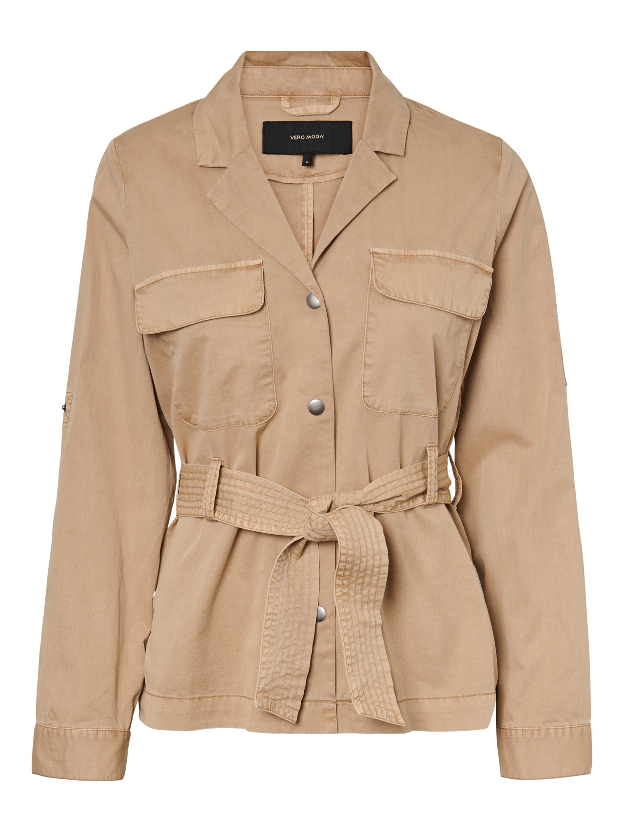 Cargo jacket with pockets, button details and a wrap belt at the waist. Wear the jacket with trousers and boots for a cool and casual look.