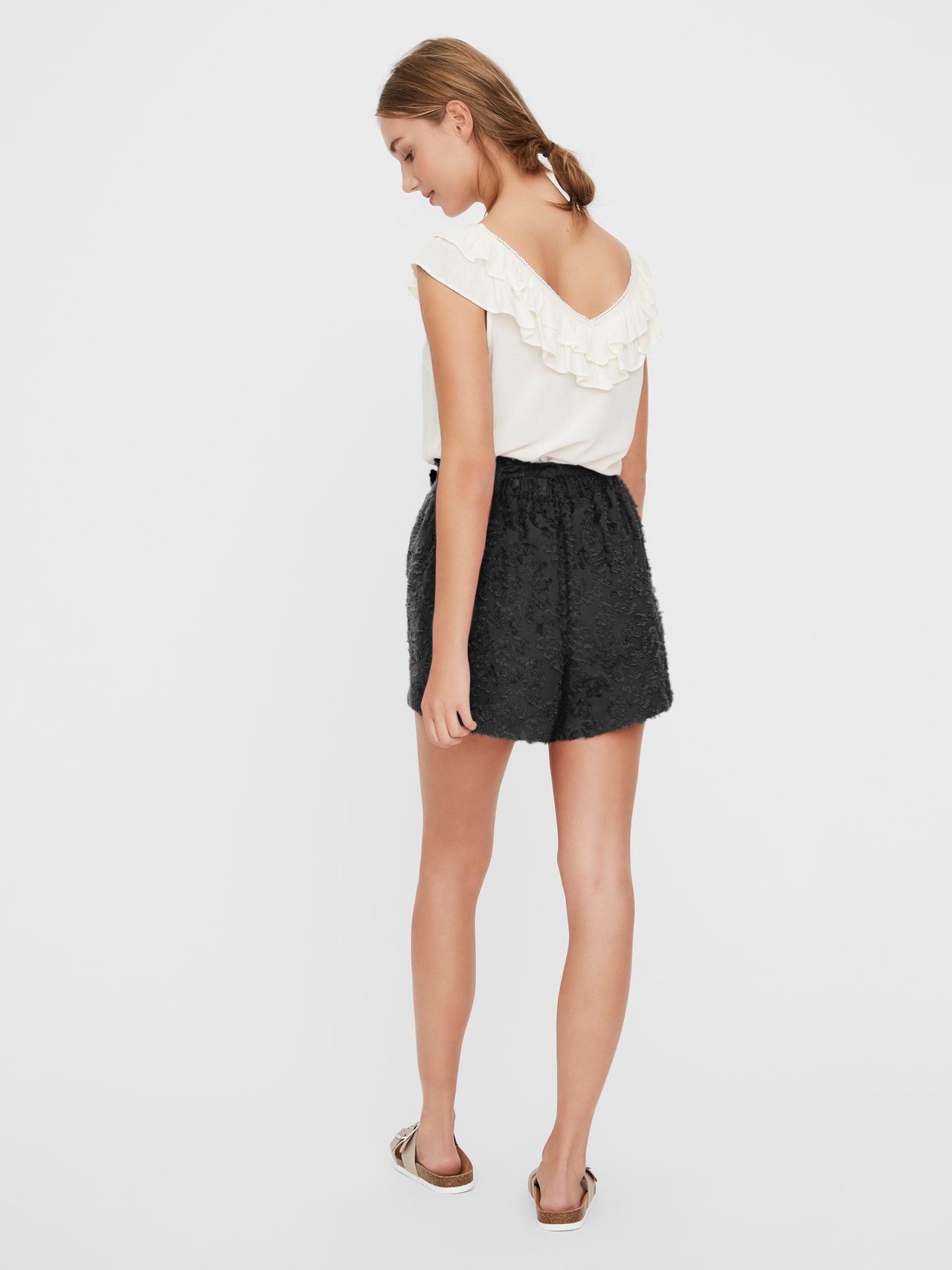 Mini shorts with a jacquard pattern and a belt at the waist. Pair the shorts with a simple top and let the jacquard shorts be the centre piece of your outfit.