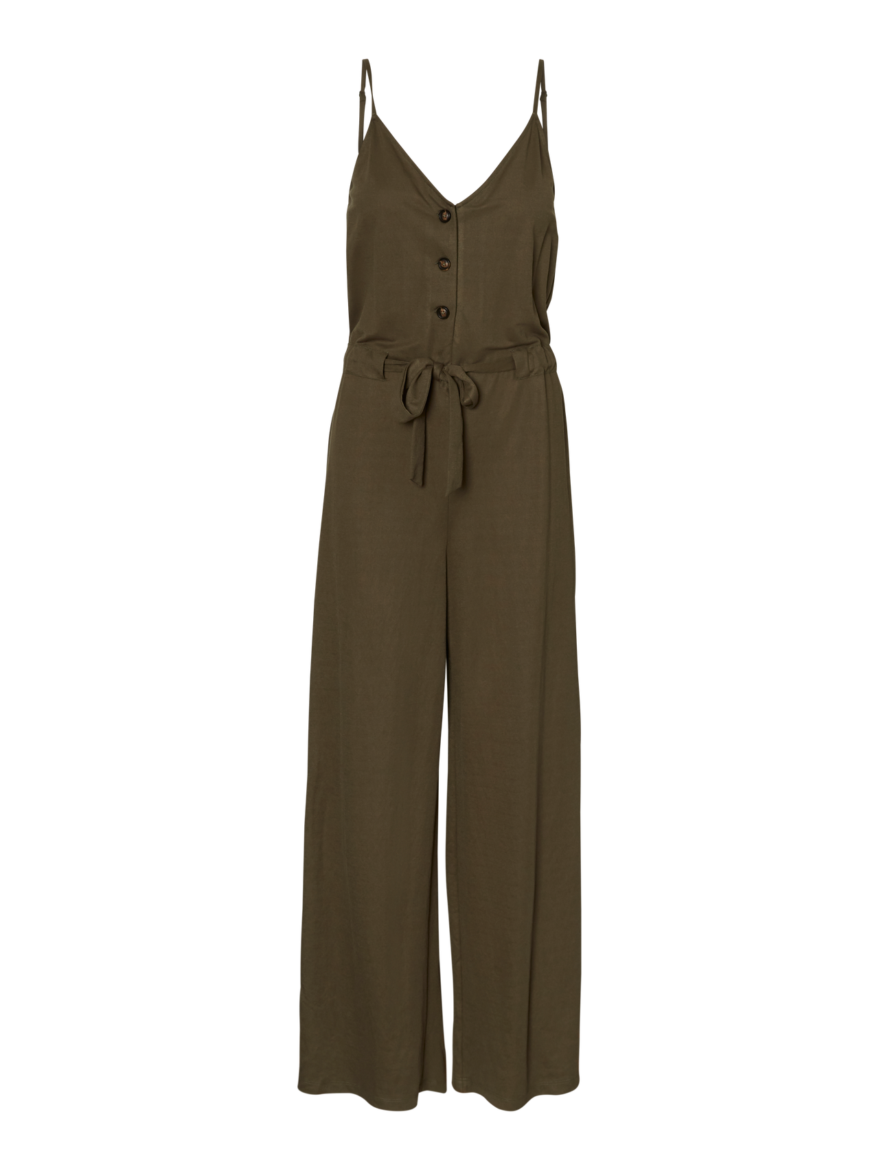 LDS JUMPSUIT WITH SPAGHETTI STRAPS AND TIE BAND AT WAIST AND BUTTONS