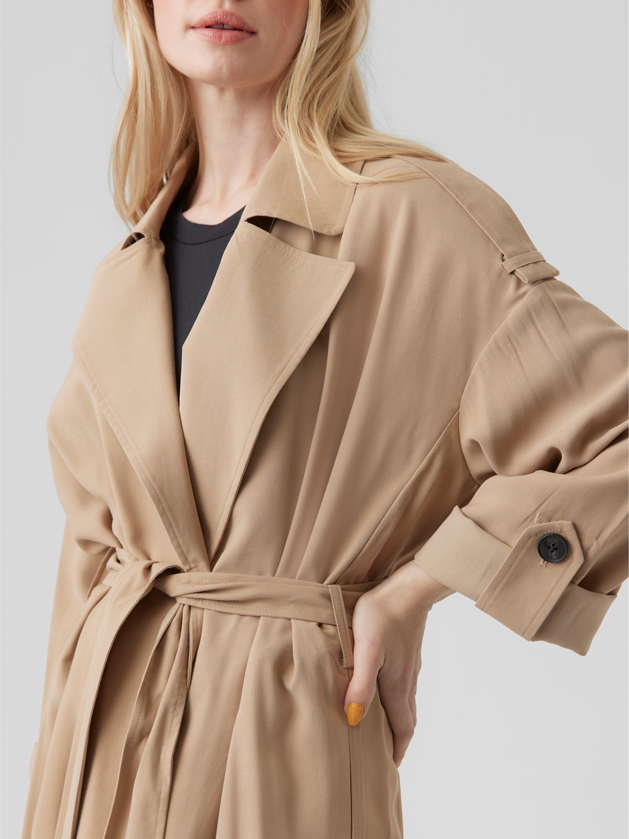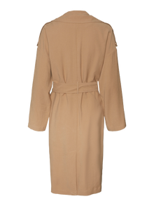 Calling all trench coat lovers. With its classic and timeless look, the trench coat never seizes to impress but keeps on being a trend season after season. No matter your style, you will - without a doubt - find a fashionable and functional trenchcoat that matches your personal taste and demands. - Product Type : Trenchcoat - Neck : V-Neck - Sleeve : - Closing : Belt fastening - Pockets : Side pockets - Length/Size : Below knee - Body Type : - Fit :
