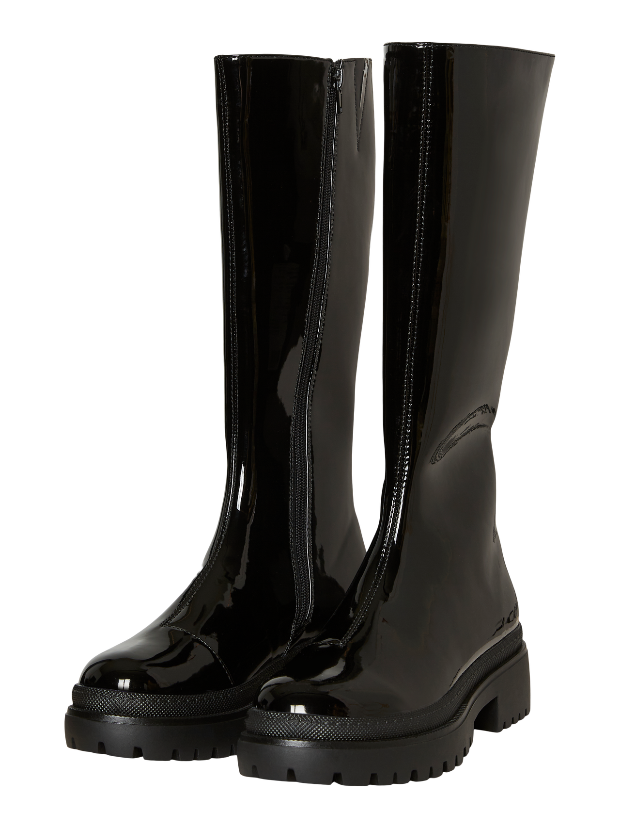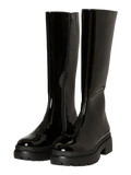 Long boots with a chunky outsole, a long shaft, and a zipper closure on the inner side of the boot. Style these cool boots with a bodycon dress and an oversized blazer for a chic everyday look.