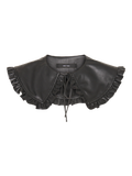 Statement collar with a coated collar, frill details at the edge of the collar and a tie-string closure. This cool statement collar is the perfect finishing touch if you wish to add a little extra detail to your look. Style it with a knitted pullover for a feminine and sophisticated look.