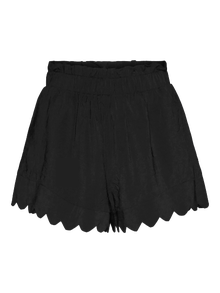 Detailed shorts with a high waist, slit pockets in the sides, and an elastic waist. Style these cute shorts with a simple top and some loafers for a stylish everyday look.