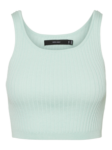 Cropped top with a ribbed structure, slim straps, and a round neckline. Style this cute top with a pair of high waisted jeans, a light jacket, and some slippers for a stylish look.