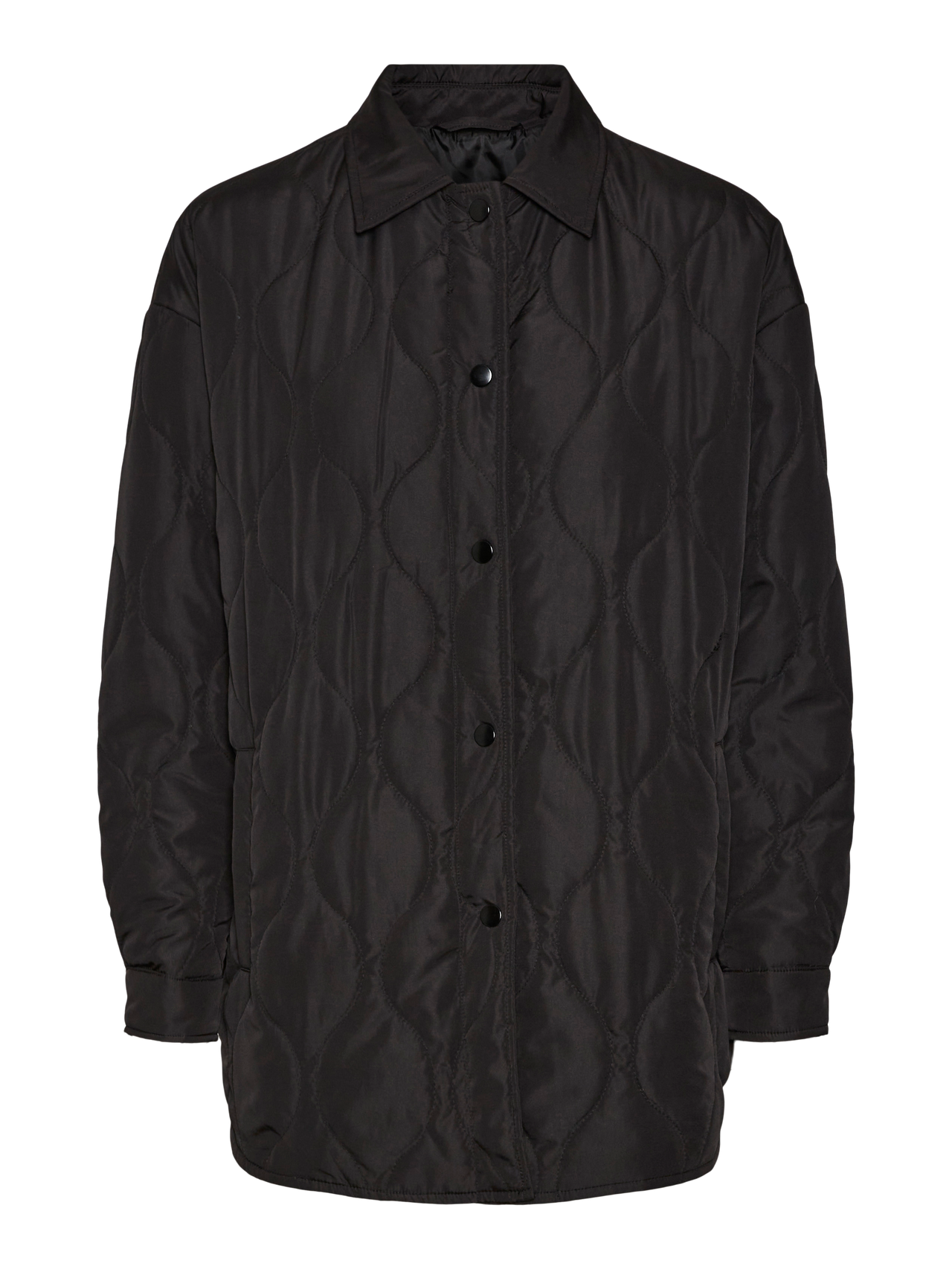 LDS JACKET WITH QUILT AND SHIRT COLLAR. PRESS BUTTONS CENTER FRONT