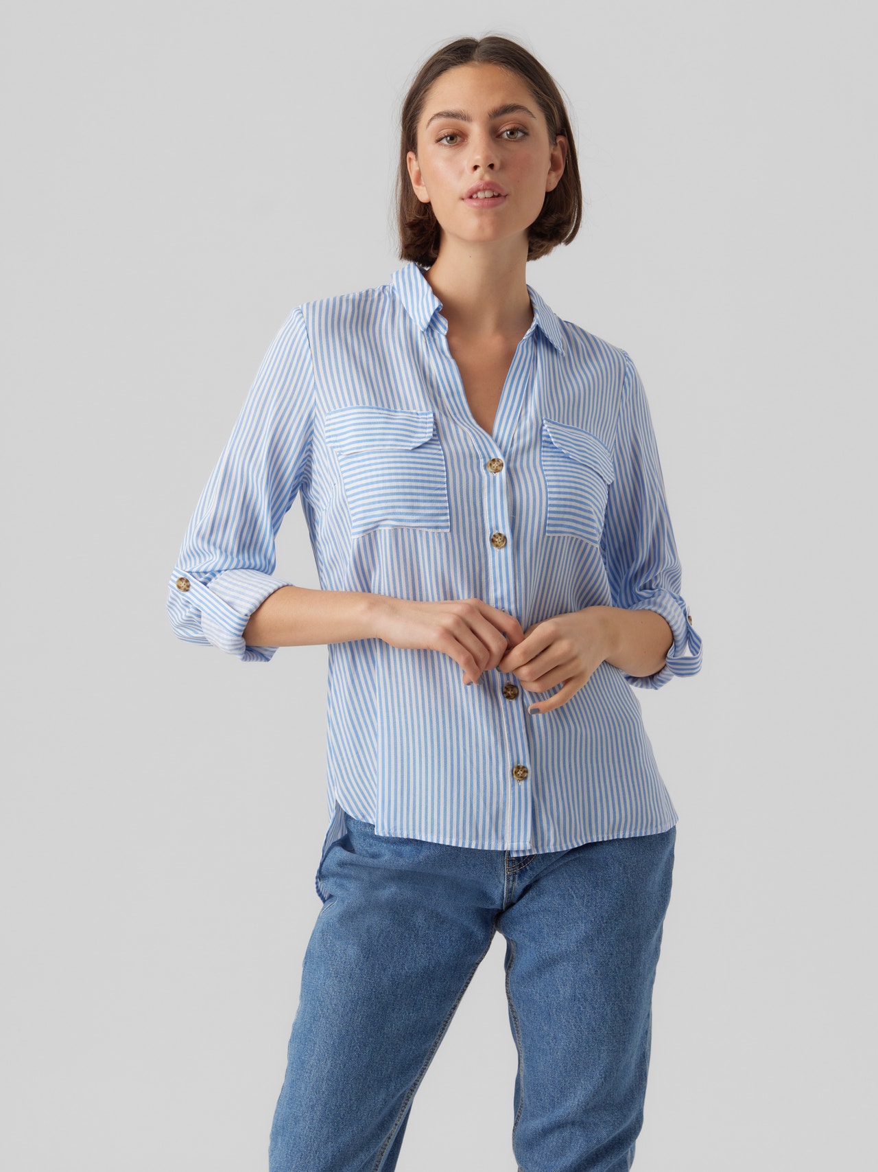 This shirt is a chic and versatile addition to your wardrobe as it can be worn on its own as well as used open with a simple top underneath. Pair it with classic jeans and a simple T-shirt for a cool everyday look, or dress it up by adding a pair of trousers and heels.