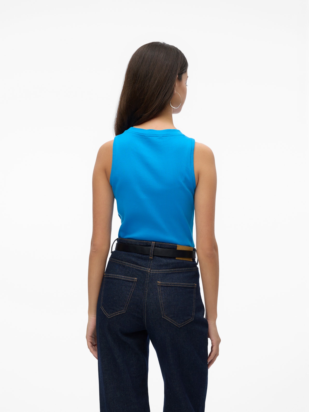 Basics are inevitable to find in almost every wardrobe out there. Our basic tops help bind an outfit together and this top makes no exception. Wear it with a shacket on top, a pair of relaxed mom-jeans, and chunky boots and you get a relaxed and cool everyday look. - Product Type : Tank top - Neck : Round Neck - Sleeve : Sleeveless - Fit : Tight Fit