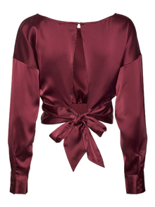 The ultimate summer must-have! This cropped top will easily elevate your jeans, skirts, and shorts to a perfect summer look. Showing off your gorgeous figure and complimenting a high waisted bottom this top will definitely do your looks justice. - Product Type : Top - Neck : O-Neck - Sleeve : Long sleeves - Sleeves : Dropped shoulders - Cuffs : Buttoned cuffs - Length/size : Cropped - Extra details : Cut-out detail, Knot detail - Fit : Loose Fit