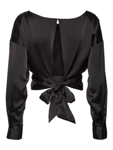 The ultimate summer must-have! This cropped top will easily elevate your jeans, skirts, and shorts to a perfect summer look. Showing off your gorgeous figure and complimenting a high waisted bottom this top will definitely do your looks justice. - Product Type : Top - Neck : O-Neck - Sleeve : Long sleeves - Sleeves : Dropped shoulders - Cuffs : Buttoned cuffs - Length/size : Cropped - Extra details : Cut-out detail, Knot detail - Fit : Loose Fit