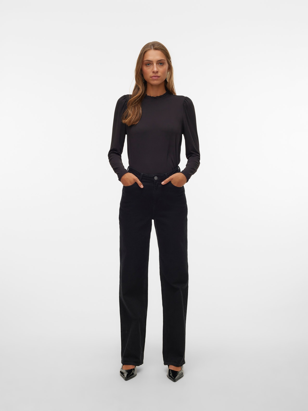 Basics are inevitable to find in almost every wardrobe out there. Our basic tops help bind an outfit together and this top makes no exception. Wear it with a shacket on top, a pair of relaxed mom-jeans, and chunky boots and you get a relaxed and cool everyday look. - Product Type : Top - Neck : High neck - Sleeve : Long sleeves - Closing : Button fastening - Fit : Regular Fit