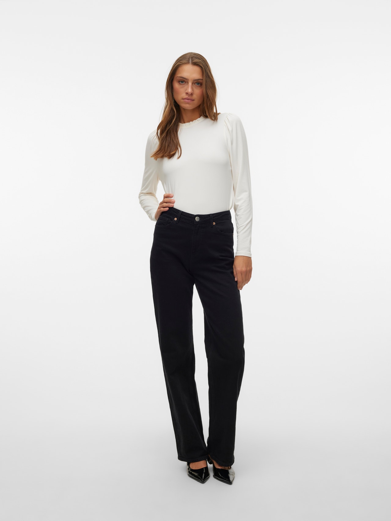 Basics are inevitable to find in almost every wardrobe out there. Our basic tops help bind an outfit together and this top makes no exception. Wear it with a shacket on top, a pair of relaxed mom-jeans, and chunky boots and you get a relaxed and cool everyday look. - Product Type : Top - Neck : High neck - Sleeve : Long sleeves - Closing : Button fastening - Fit : Regular Fit