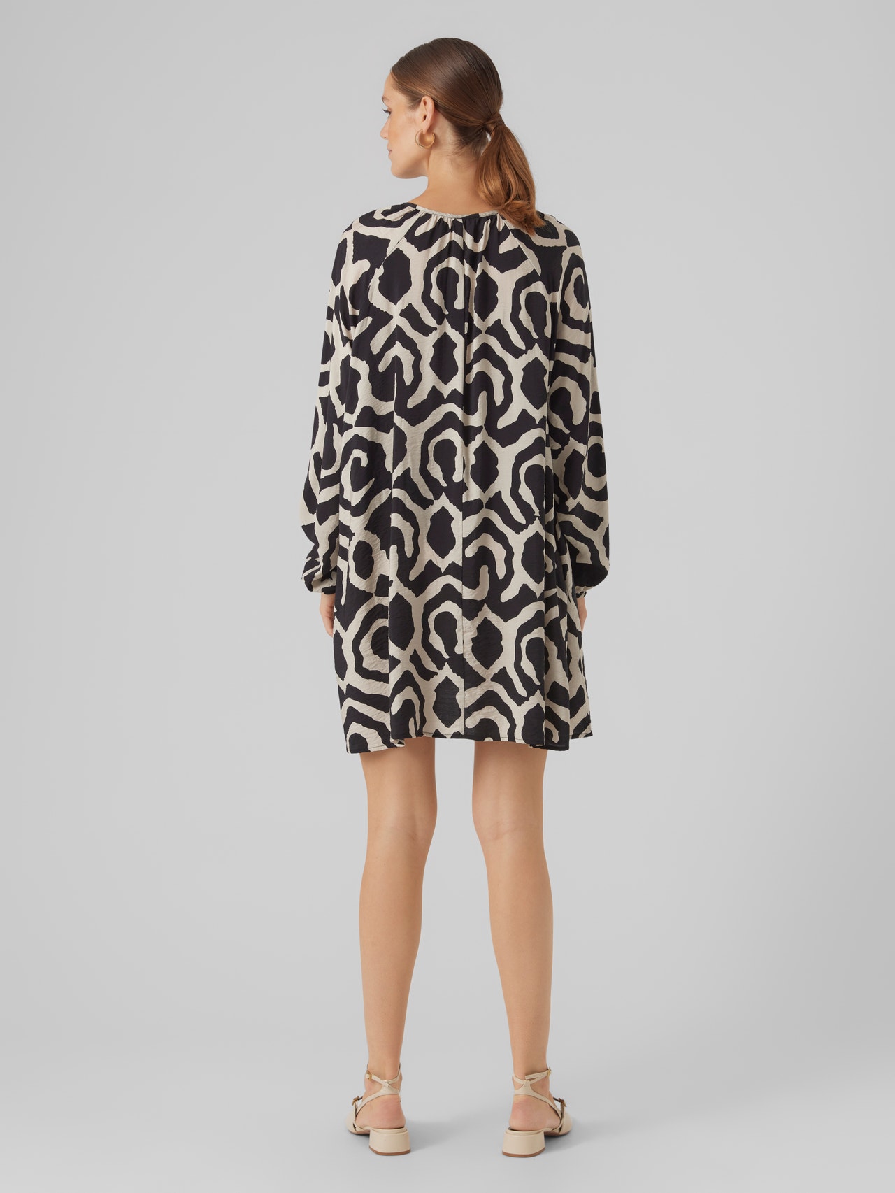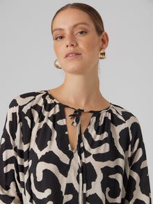 This dress is the perfect choice on days, where putting together an outfit seems impossible. Combining comfortability and style makes this dress a perfect everyday go-to. Style it up or down depending on your taste. - Product Type : Tunic - Neck : V-Neck - Sleeve : Long sleeves - Sleeves : Volume sleeves - Cuffs : Elasticated cuffs - Closing : Drawstring fastening - Length/Size : Hemline falls at midi length, below knee - Print : Print repeated across the entire surface of the product - Fit : Regular Fit
