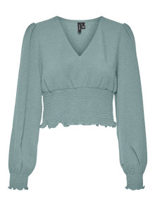 Looking for your new everyday favourite top? We got an idea. This top will easily become your new go-to on days where you are not in the mood for something wild, but still want to look on-trend. Add some jewellery for that extra bit of sparkle or keep it simple with a light jacket. - Detail Type : Smock top - Neck : V-Neck - Sleeve : Long Sleeves (L/S) - Sleeves : Volume sleeves - Cuffs : Smocked cuffs - Extra details : Smock detail - Fit : Regular Fit