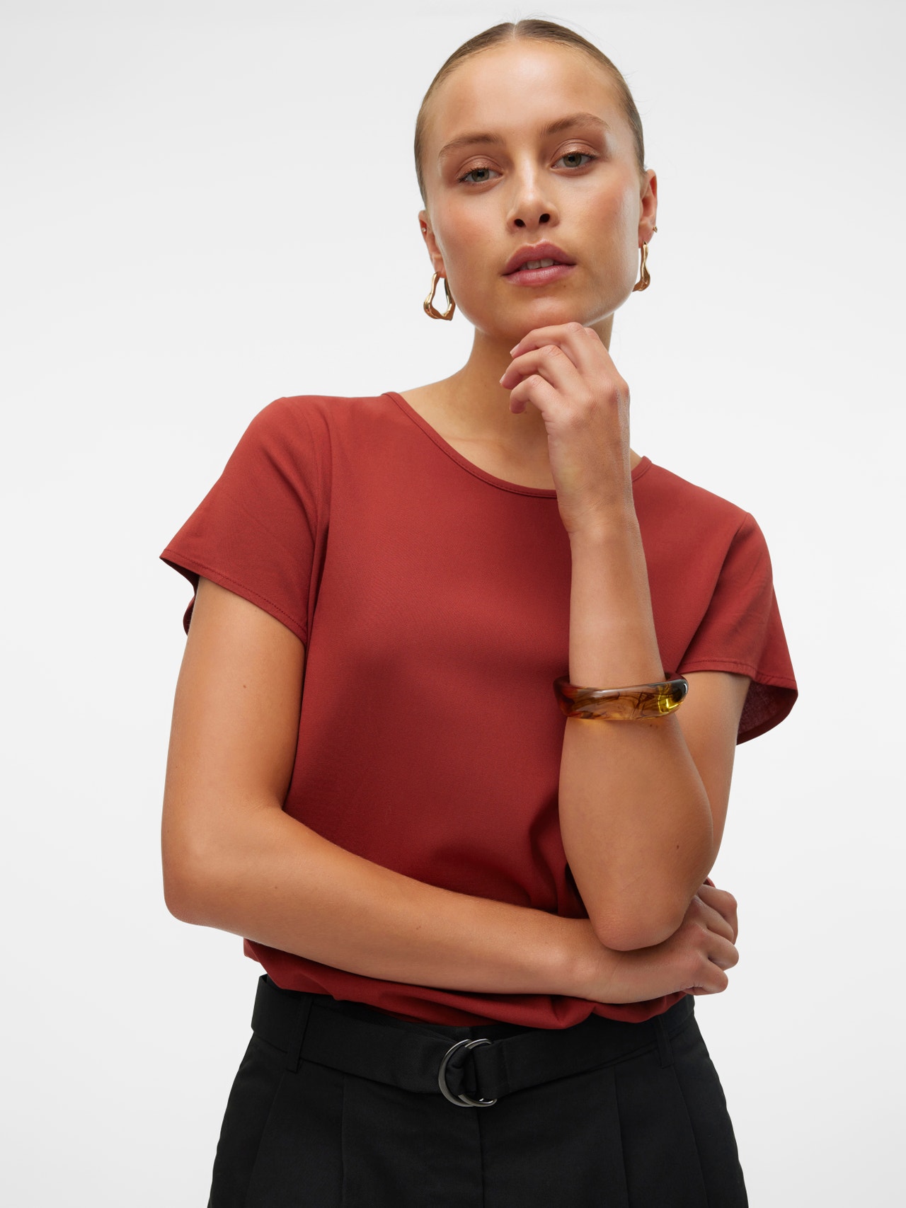 Basics are inevitable to find in almost every wardrobe out there. Our basic tops help bind an outfit together and this top makes no exception. Wear it with a shacket on top, a pair of relaxed mom-jeans, and chunky boots and you get a relaxed and cool everyday look.