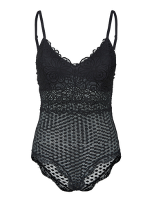 Adding a little lace to your underwear is always a good idea. Combining a light, comfortable material with a feminine and stunning look will have you feeling your very best. - Product Type : Bodysuit - Neck : V-Neck - Sleeve : Sleeveless - Straps : Adjustable straps - Extra details : Lace detail