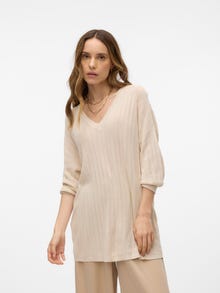 No wardrobe is ever complete without your favourite jumper, and this might be your new go-to top layer. The perfect way to stay warm and stylish without compromising on comfortability. Pure perfection!. - Product Type : Knitted pullover - Neck : V-Neck - Sleeve : 3/4 sleeves - Length/Size : Long