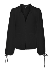 This stunning shirt is easy to style up and down depending on the occasion, but will definitely provide you with a feminine touch. Go for baggy jeans and heels when styling - it will give a perfect casual-chic look. - Product Type : Shirt - Neck : Shirt collar - Sleeve : Long sleeves - Sleeves : Volume sleeves - Closing : Button fastening - Extra details : Frills - Fit : Regular Fit
